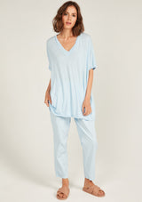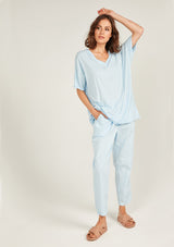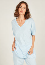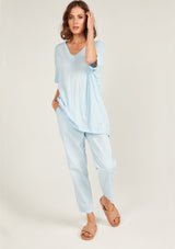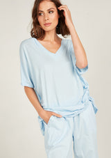 The Loose V Tee by Primness is crafted from 100% Cotton. This Top features a wide v shaped neckline and twin needle hem detailing. This style is a relaxed fit, with a longer hem length.