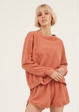 Crafted from a new ultra-soft and luxurious terry cotton fabrication, the Lover Jumper was designed with comfort in mind. Featuring a relaxed fit that can be worn effortlessly from lounge to brunch. Folded hemband and cuff with a dropped shoulder sleeve and rounded neckline. This is a quality fabric with a looped exterior. Pair with the Lover Twisty Pant for the ultimate set.