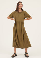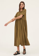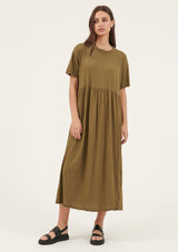 The Miku Dress by Primness is an elevated maxi length basic tee dress constructed from lightweight cotton jersey. Featuring a gathered skirt, round neck with twisted neckband and a babylocked hemline. Pair with your favourite slides for the perfect everyday easy outfit.