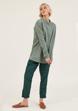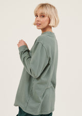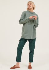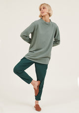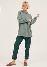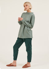 The go-to jumper. Featuring an oversized fit that makes it perfect for layering during the cooler months. Constructed with a weighted fleecy cotton fabric. Folded hemband and cuff with a dropped shoulder sleeve. High, rounded neckline for extra coverage. Hand Made in Australia.