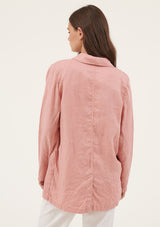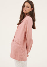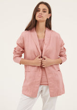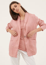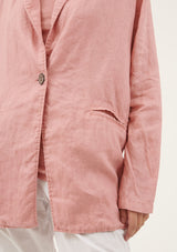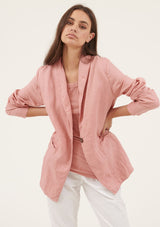 The Paradise Blazer from Primness is a lightly structured jacket that is perfect for spring dressing. It features a single front shell button closure with a shawl lapel, welt pockets and long sleeves. Crafted from 100% Linen; this Blazer has a relaxed, slightly undone feel and is the ideal choice for chic everyday dressing.