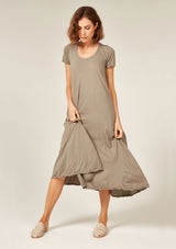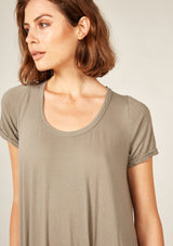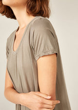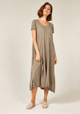 The Quoet Tee by Primness is crafted from their signature cotton Jersey fabrication. It features an A-line body shape with a swing and relaxed fit. Asymmetrical hemline and a perfectly rounded neckline with a wide band. Cuff and hemline finished with a twin needle.