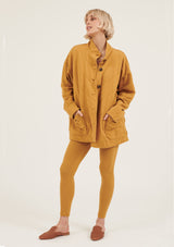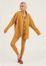 The perfect winter layer is here. The fleecy jacket with a twist! The Requ Jacket features a gorgeous, quilted stitching detail on a double layered front and back. Dropped sleeves with large roll up cuffs for a cozy feel. Tortoiseshell buttons with a standing collar, two front pockets. The fleece fabric has looped interior for extra warmth. The Requ is simply the best box shaped cover up.