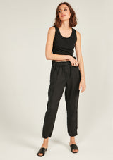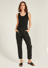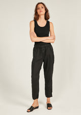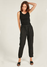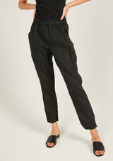 The Seaside Pants by Australian designer Primness are effortlessly cool, featuring a relaxed fit with a tapered leg and an elasticised waistband for comfort. Mock fly front. Two functional side pockets and two neat back pockets.