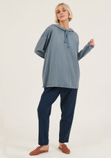 The latest deluxe hoodie has arrived from Primness. Using a heavy organic cotton fabrication that makes it supremely soft to wear. Dropped shoulders and loose a-line silhouette. Twin needle hemline and banded sleeve cuff. Cotton herringbone drawcord. This hoodie will keep you both cozy and comfortable all Winter long. This is the one you will not take off. Pair with the Cozy Track Pant for the ultimate comfort outfit.