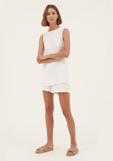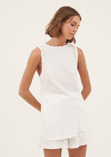 The Slung Tank by Primness is the perfect high neck tank. Featuring a high neck, dropped armhole with bust darts and a raw uneven hemline. Can be worn as is or as a layering piece