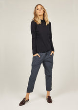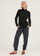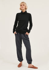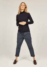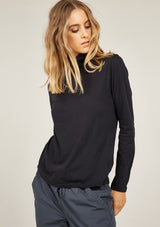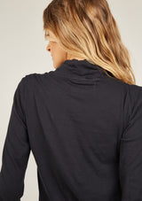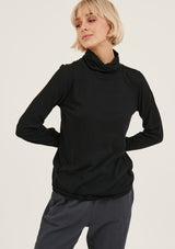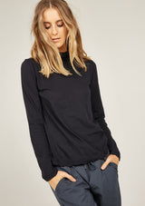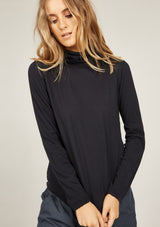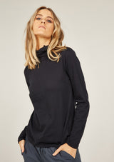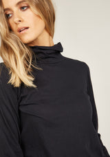 The Topo Skivvy is crafted from 100% Cotton Jersey, a stretch fabrication. it features a high neck, fitted body and long sleeves.