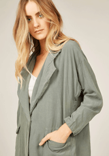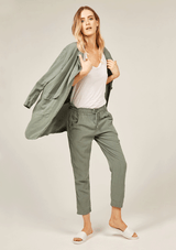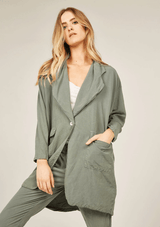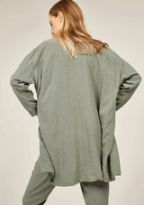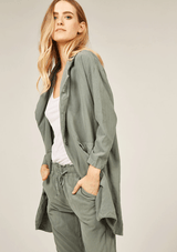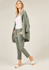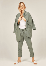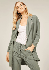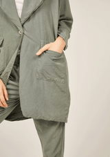 The Yoyo Blazer by Primness is crafted from their signature Sueded Silk. This Blazer features a double layered front panels and signature shell buttons, two feature front pockets and dropped shoulders. Relaxed tailoring at its finest, using immaculate French seams and top stitching.