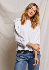 T159Made in French Terry, Perfect White Tee’s newest sweatshirt design features 3/4 length sleeves with the smallest design details. pintucked wrists and a clean raw hemline give this relaxed crewneck just a touch of playfulness.