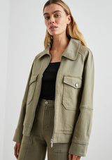 The Cheyenne Denim Jacket from Los Angeles designer, Rails, features a large collar, zipper front opening, full length sleeves with buttoned cuffs and oversized patch pockets. Crafted from stretch cotton, this unlined jacket is perfect for layering and adds a touch of military inspired edge to any outfit. It will keep you looking fashionable and feeling confident.