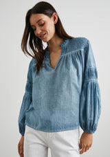 The Marli Shirt from Los Angeles designer, Rails, features an elegant V-neckline and full length blouson sleeves with elasticated cuffs. Crafted from a soft, lightweight cotton and complete with dainty fabric details, Marli is ready to go anywhere with you this season.