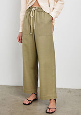 The Ryan is a safari-inspired closet classic, crafted from ultra-soft luxe linen. This high-rise pant features a shirred waist and corded drawstring for a customizable fit, as well as a wider leg for breathability.