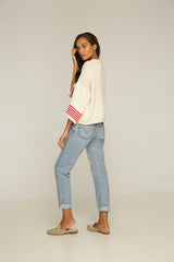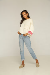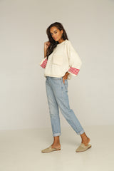 The Rincoln Bell Sleeve Knit is your ultimate summer knit that is perfect piece to throw on, on those chilly summer nights! Crafted out of 100% Cotton it features pocket detailing on the front and red stripes on the sleeve for a point of difference.