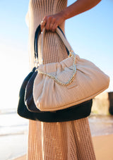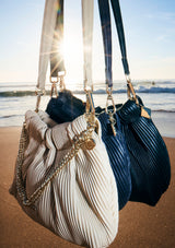 The Alexis Shoulder Bag from SABEN is crafted from a luxurious pleated lamb leather and accented with gold hardware. This bag exudes elegance and is perfect for any occasion - from evenings out, long lunches and summer weddings.