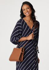 The Bea Crossbody Bag by SABEN is smart and stylish with elegant practicality. Featuring dual compartments and a secure zip divider; your goods stay organised and accessible. The perfect size to hold your everyday essentials with stylish ease. Carry, prop or wear crossbody with the detachable and adjustable shoulder strap.