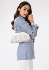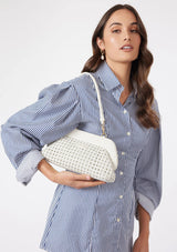 The Giselle Mini Bag by Saben features a hand-woven shoulder bag with a leather frame. This petite bag has been cleverly designed to transform into a clutch, by allowing the D rings to tuck inside seamlessly. Crafted in luxurious hand-woven leather, Giselle is the perfect partner for long lunches, evenings out and summer weddings.
