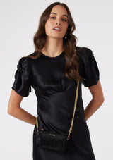 The Lily Mini Bag from SABEN features an adjustable chain strap which can be worn draped cross-body or propped over the shoulder. We imagine Lily being worn to the fancier of the fanciest events; weddings, nights out and so much more. Take her chain off to use her as a wallet where she can store your cards, phone, and keep your goodies safe in her multiple sections – she may be small but she is highly productive!