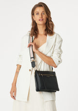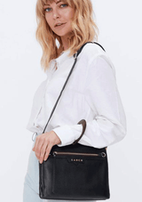 The Matilda Crossbody Bag by SABEN has all the internal bells and whistles to keep you organised but with room for an iPad (or whatever else you fancy). Complete with signature front zip pocket design, zip top closure, divided into three convenient compartments with internal drop pockets, internal zip pocket, 6 drop card slots, cotton drill lining and detachable and adjustable crossbody strap.