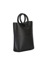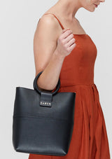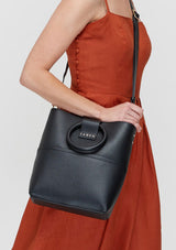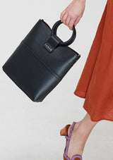 The Tabbie Bag by Saben features a signature circular handle, gold stud hardware and a slip pocket on the back. An adjustable crossbody strap gives you the option to go hands-free.