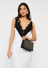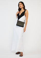 The Tilly Big Sis Bag by SABEN features a cross-body design with zip closures, five compartments and inner zip pockets to keep all your valuables safe. Crafted from 100% pebble grain leather and adorned with elegant gold studs, this bag is sure to make a statement.