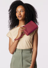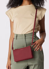 The Tilly Crossbody Bag by SABEN is a wallet, clutch and crossbody staple, a tri-factor and the linchpin to keeping your life in order. A bag that works as hard as you do. Bunked in your big bag as a wallet, worn as a clutch with the wristlet strap or utilise it as a petite yet highly productive cross-body handbag with the ease and elegance of the cross-body strap.