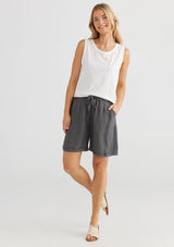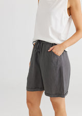 SH23127The Dune Shorts from Shanty Corporation feature an elasticised waistband with draw string, front pockets, welted back pocket detail and a wide leg silhouette. This relaxed short is crafted from a linen blend fabrication that is breathable and ideal for everyday wear.