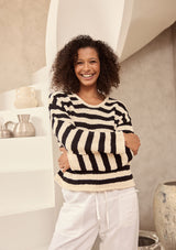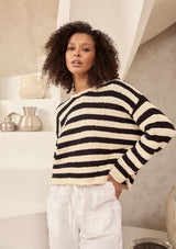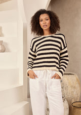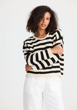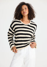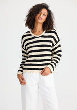 SH25118The Keo Knit by Shanty is crafted by 100% cotton and features a round neckline, long sleeves and a stipe detail. This knit is the perfect addition to your all year round wardrobe.