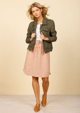 The Monza Jacket by The Shanty Corporation is crafted from 100% Linen. This Jacket features a classic fit with raw hem detailing, long sleeves and brass buttons.