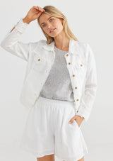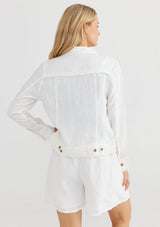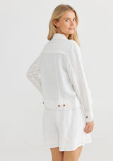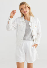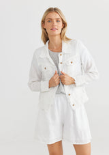 SH647SJGThe Monza Jacket by The Shanty Corporation is crafted from 100% Linen. This Jacket features a classic fit with raw hem detailing, long sleeves and brass buttons.