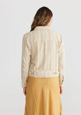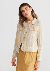 SH2524The Monza Jacket by The Shanty Corporation is crafted from 100% Linen. Features include a classic collar, button down closure, chest flap pockets, inseam waist pockets and raw edge detailing. Cut for a regular fit.