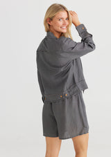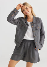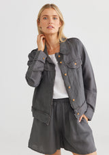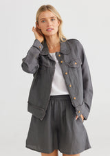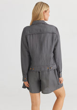The Monza Jacket by The Shanty Corporation features a classic collar, button down closure, chest flap pockets, inseam waist pockets and raw edge detailing. This versatile jacket is cut for a regular fit and crafted from a linen blend fabrication that is breathable and ideal for everyday wear.