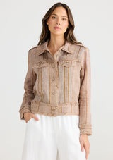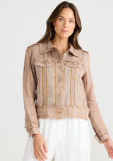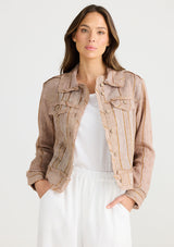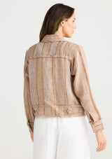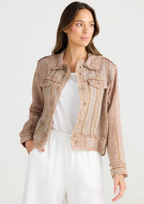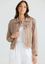The Monza Jacket by The Shanty Corporation is crafted from 100% Linen. Features include a classic collar, button down closure, chest flap pockets, inseam waist pockets and raw edge detailing. Cut for a regular fit.