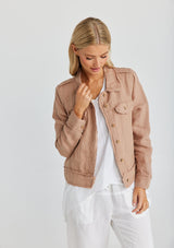 SH2524The Monza Jacket by The Shanty Corporation is crafted from 100% Linen. Features include a classic collar, button down closure, chest flap pockets, inseam waist pockets and raw edge detailing. Cut for a regular fit.