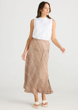The Sicily Skirt from Shanty Corporation is a wardrobe must-have and all-time bestseller. Featuring an elasticised waistband and side splits - simple yet sophisticated, this flattering bias-cut linen skirt will instantly elevate your style.