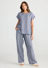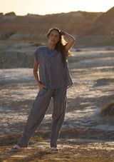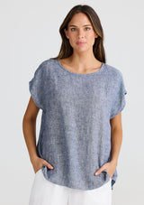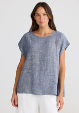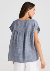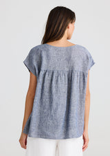 SH23121The Souk Top from Shanty Corporation features a wide boatneck, cap sleeves and a back yoke with soft gathering which adds a touch of softness to this relaxed piece, making it a luxurious staple for your wardrobe. Crafted from 100% linen, this top has a textured slub pattern that adds depth and character, making it a versatile and stylish addition to your wardrobe.