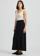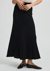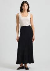 The Fine Rib Skirt from Toorallie features an elasticized waist and and a finely curved hemline. This skirt flatters your figure with a close fit and flare at the base. A versatile piece for any season, pair with a sneaker for a casual look or elevate with a heel or boot.