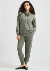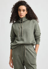 The Lounge Funnel Neck Sweater from Toorallie is a refined lounge essential. It features an extended funnel collar with a cotton drawcord and full-length banded hem sleeves. Complete with convenient in-seam side pockets and a banded hem, this versatile and neutral piece is light to wear with the warm and protective natural properties of the blended merino wool fibre. Whether lounging at home or out and about, this sweater is a dependable wardrobe staple.