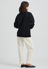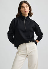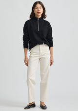The Zip Collar Sweater from Toorallie is a refined lounge essential. With an extended collar, half-zip closure, drop shoulder, full-length sleeves and a banded hem, it is both polished and relaxed. This versatile and neutral piece is light to wear with the warm and protective natural properties of the blended merino wool fibre. Whether lounging at home or out and about, this sweater is a dependable wardrobe staple.
