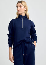 The Zip Collar Sweater from Toorallie is a refined lounge essential. With an extended collar, half-zip closure, drop shoulder, full-length sleeves and a banded hem, it is both polished and relaxed. This versatile and neutral piece is light to wear with the warm and protective natural properties of the blended merino wool fibre. Whether lounging at home or out and about, this sweater is a dependable wardrobe staple.
