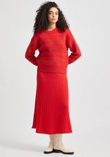 The Wavey Knit from Toorallie features a wavey intarsia stitch with a high crew neckline, full length sleeves and a boxy silhouette. Crafted from soft Australian merino lambswool, this playful knit will keep you feeling warm and looking stylish.
