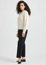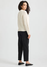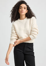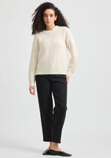 The Wavey Knit from Toorallie features a wavey intarsia stitch with a high crew neckline, full length sleeves and a boxy silhouette. Crafted from soft Australian merino lambswool, this playful knit will keep you feeling warm and looking stylish.