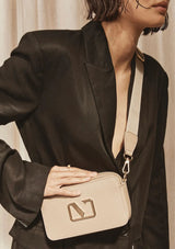 The Billie Crossbody Bag by VESTIRSI is smart and stylish with elegant practicality and handmade in Italy from Italian Saffiano leather . With just enough space for the essentials under a double zip design, Billie features a statement VESTIRSI V and an adjustable fabric strap.