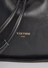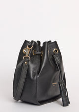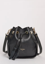 The Bridgetta Bucket Bag from VESTIRSI is a crossbody worthy of becoming your new everyday staple. Featuring pale gold hardware and a front drawstring top that opens to reveal space inside for your daytime essentials. Finished with a gold foil logo and leather tassels for a subtle yet chic daytime look. Use the adjustable and detachable leather strap to wear on the shoulder or cross-body.