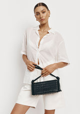 The Daniella Woven Bag from VESTIRSI is a petite woven shoulder bag that is perfect for dressing up your favourite looks. Daniella is meticulously handcrafted with intricate woven panels on every angle, complete with a gold zipper at the top and an internal small pouch perfect for holding cards and loose change.