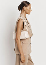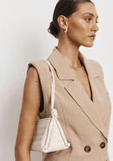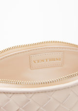 The Daniella Woven Bag from VESTIRSI is a petite woven shoulder bag that is perfect for dressing up your favourite looks. Daniella is meticulously handcrafted with intricate woven panels on every angle, complete with a gold zipper at the top and an internal small pouch perfect for holding cards and loose change.