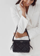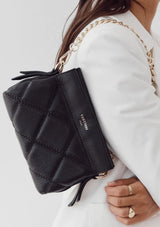 The Ella Quilted crossbody bag from Vestirsi features a petite pebbled leather purse with a diamond-shaped quilted design and a gold foil logo. This bag is handmade in Italy from luxury Italian leather and different strap options make Ella the perfect companion for any occasion.