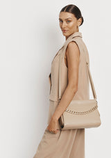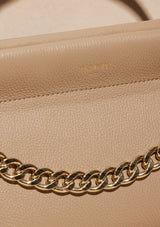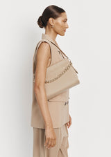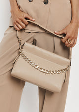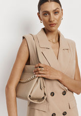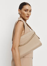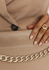 The Esther Chain Bag from VESTIRSI is handmade in Italy from luxe pebbled Italian leather, embellished with a statement chain detail and a minimal gold logo. Esther can be tucked under your arm or crossbody via the long thin adjustable strap when on the go. The front chain detail can be removed for a more pared-back look.