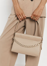 The Esther Chain Bag from VESTIRSI is handmade in Italy from luxe pebbled Italian leather, embellished with a statement chain detail and a minimal gold logo. Esther can be tucked under your arm or crossbody via the long thin adjustable strap when on the go. The front chain detail can be removed for an elegant, pared-back look.