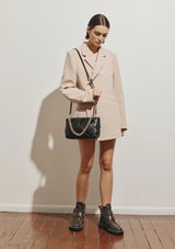 The Gabrielle Handbag by VESTIRSI is handmade in Italy from durable yet luxe Italian soft nappa leather. Woven smooth leather padded strips are the feature of this statement Italian leather handbag. Complete with the choice of two straps, choose between a short chain or a long adjustable crossbody strap depending on the occasion. A stunning investment piece, available in 4 shades to perfectly complement your capsule wardrobe.