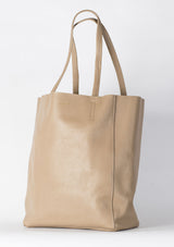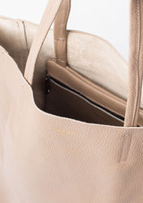 The Jillian Tote bag from Vestirsi features a classic shopper silhouette with a hidden zipper pouch to store valuables. A chic understated handbag handmade in Italy from luxuriously soft pebbled Italian leather.